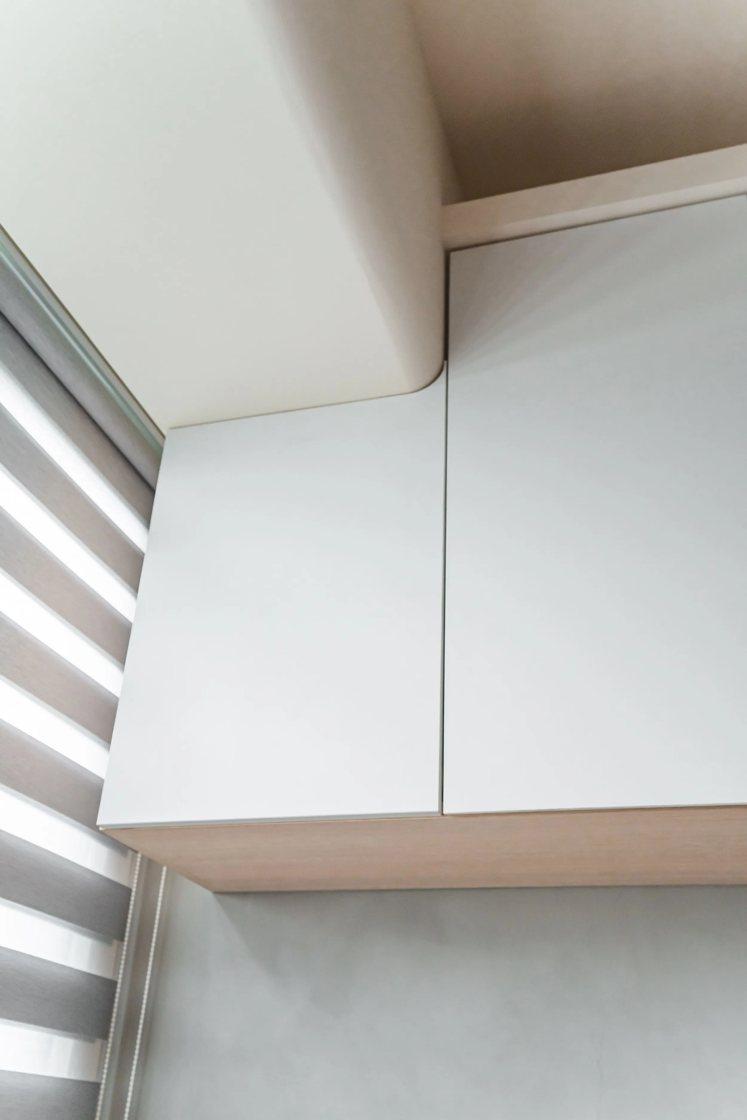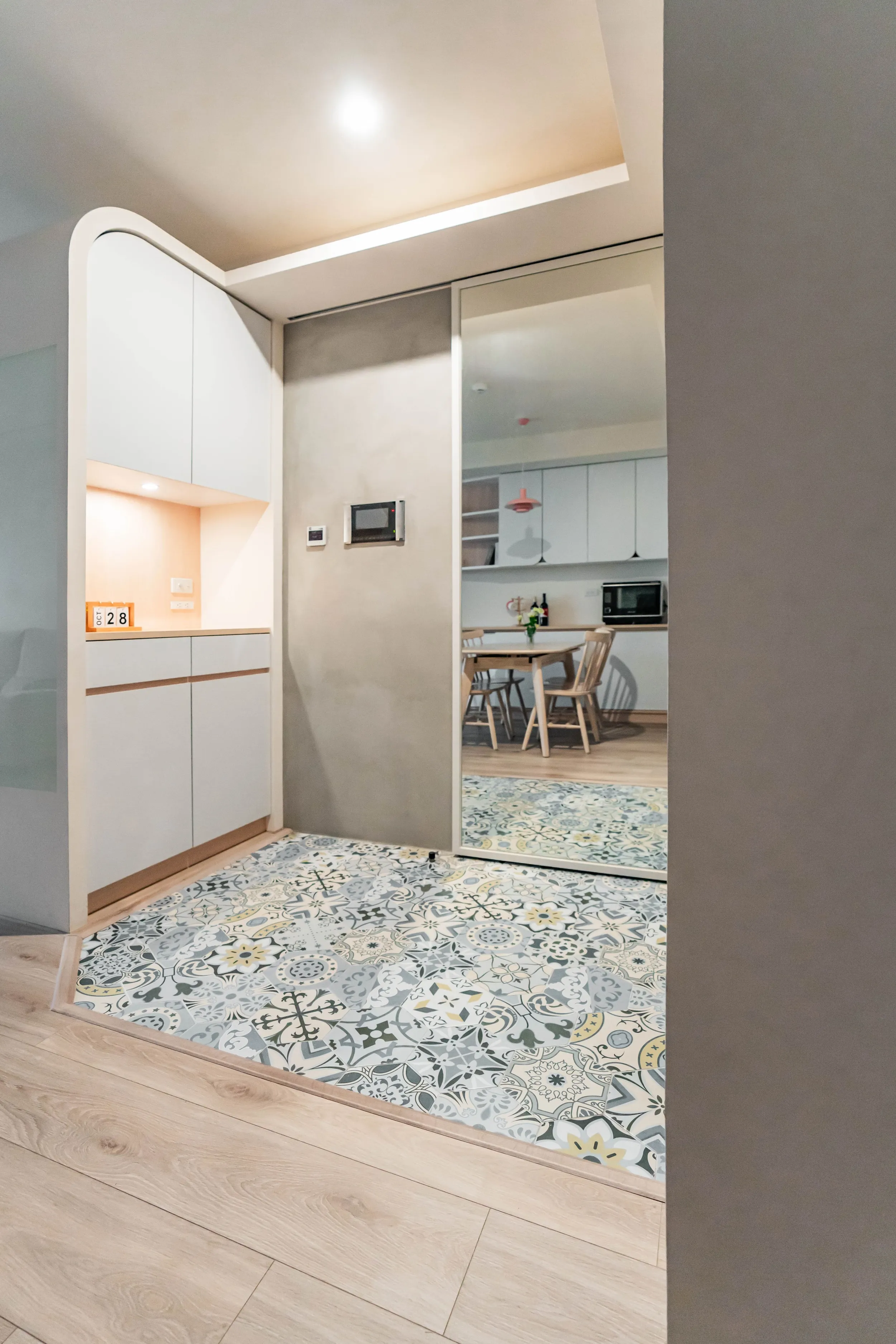 天花板局部弧形設計融入柔和的線條及圓潤的門片造型和弧形的屏風隔斷,為整體空間增添了柔和與親切感。